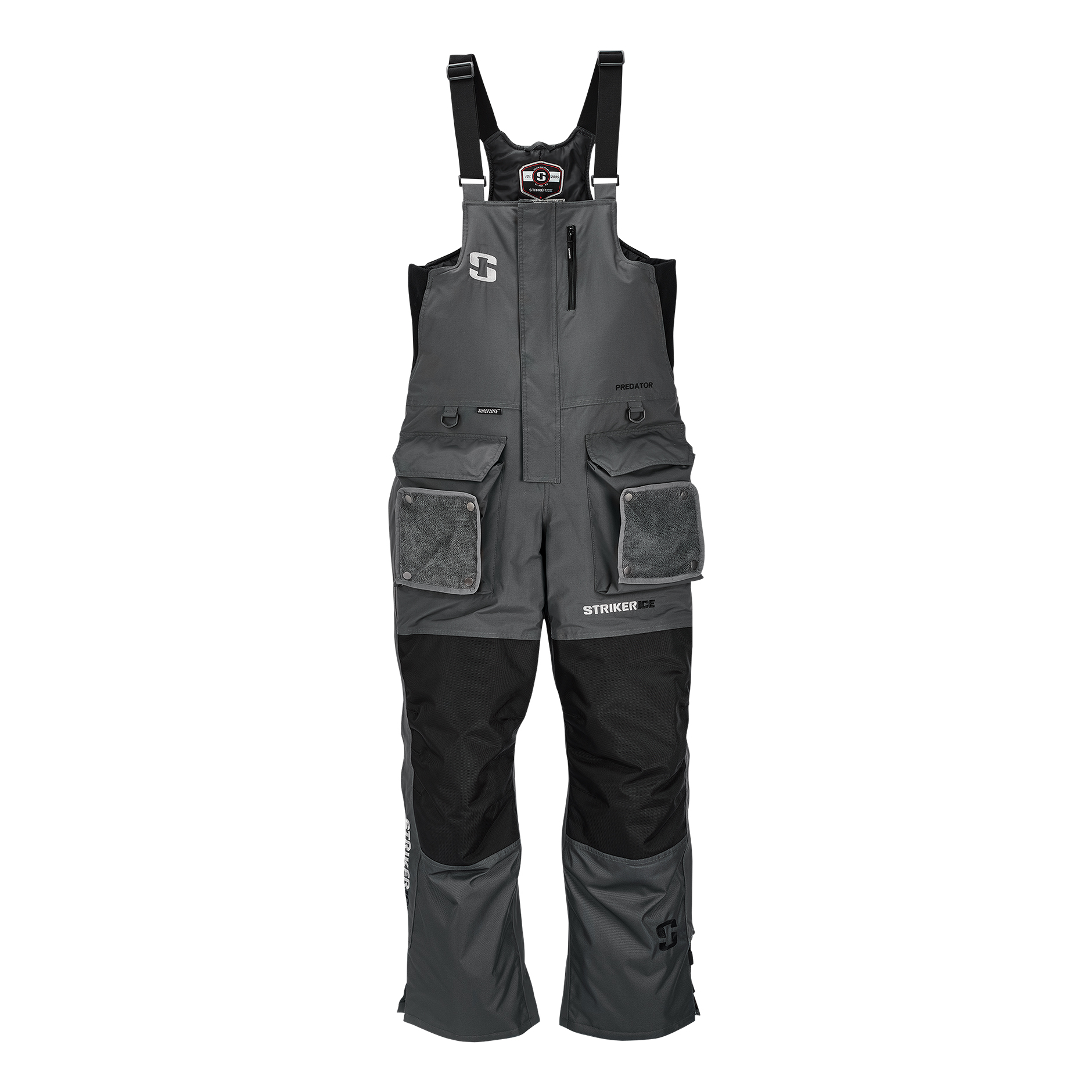 StrikerIce™ Predator Series Bibs ice-fishing overalls are created for those who choose to pursue, rather than follow. These StrikerIce bibs offer safety and protection in extreme conditions, with SureFloat® Insulation that's made from polyethylene (PE) foam to provide buoyancy and flotation for up to 2 hours when combined with a SureFloat jacket (not included). Hydrapore™ 5000 extreme waterproofing is a polyurethane (PU) laminate built into the outer shell to give you waterproof protection that's lightweight and highly breathable. And 100g Thermadex® Insulation offers superior warmth and softness with minimal loft and bulk. This insulated fishing bib is perfectly adapted to conditions on the ice, with reinforced knees, ample gear storage, magnetic zip flap closures, fast-drain hem and cuffs, attachment loops, and infinitely adjustable leg cuffs. StrikerIce Predator Series Bibs has a tough 320-denier Tussor shell, and offers easy range of motion with unrelenting safety and protection. Imported.