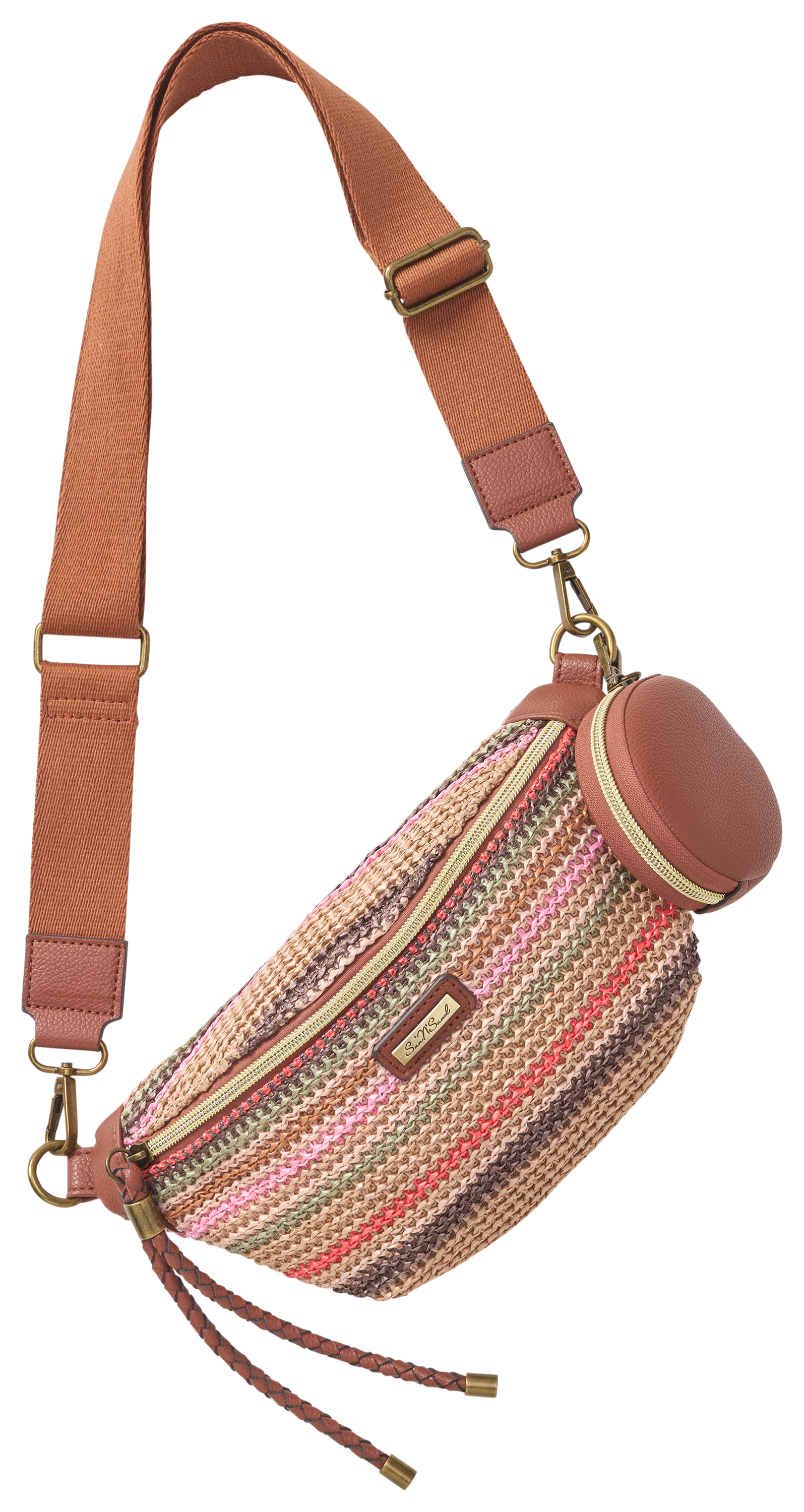 The Sun 'N' Sand® Striped Straw Belt Bag is a great-looking accessory for your day at the beach or around town. Featuring a striped pattern of varying colors, this straw bag has a braided-tassel zipper pull for extra flair. It's adjustable strap clips on for easy removal, and the zip-close compartment has a zip-close interior pocket for organization. Made of 100% paper straw. Imported.