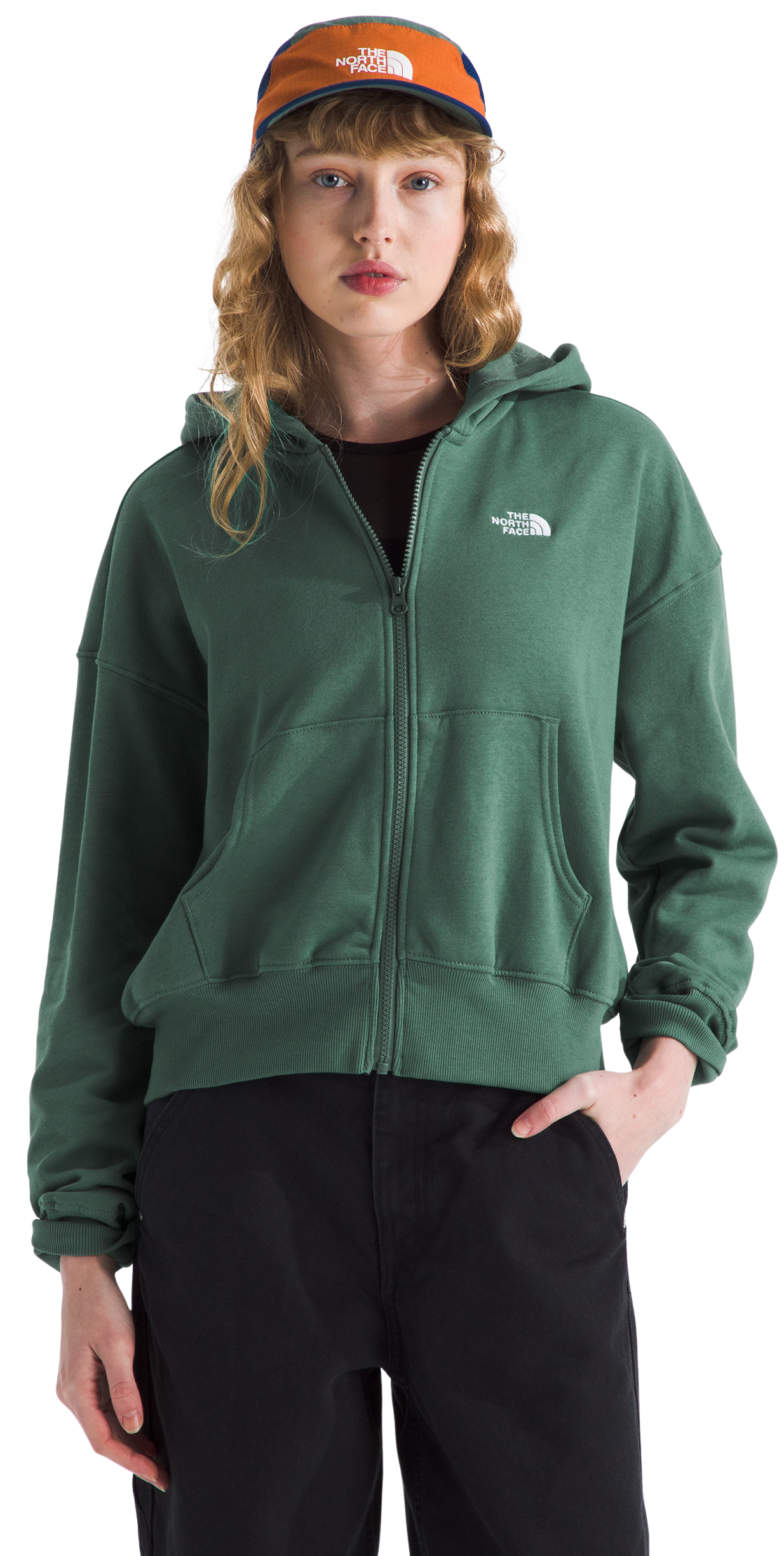 Modern style and classic comfort meet in the Evolution Full-Zip Long-Sleeve Hoodie for Ladies from The North Face®. Made from 73% Climate Conscious Cotton/27% recycled polyester and boasting a relaxed fit with dropped shoulders, this North Face hoodie is sure to be a wardrobe staple. Ribbed cuffs and hem add durability, while the crop-top design provides great-looking style. This women's hoodie is finished with an embroidered logo on the left chest and kangaroo hand pockets. Center Back Length: 21.5". Machine wash. Imported. Manufacturer style #: NF0A8812.