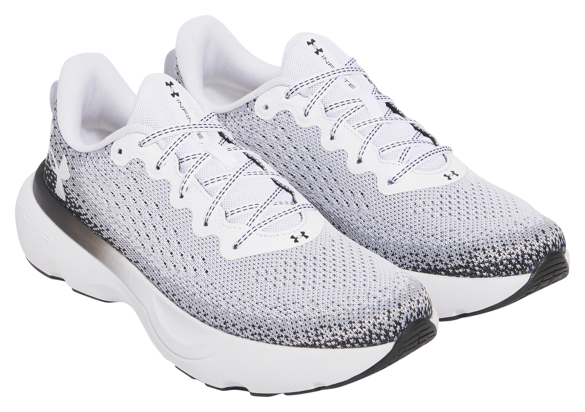 Power through every mile in the Under Armour® Infinite Running Shoes for Men. Breathable, durable knit uppers wrap your foot in lightweight comfort, promoting confidence with every stride. Inside, the Deluxe Comfort System sock liners enhance step-in feel. UA HOVR™ cushioning on these men's running shoes delivers a soft, springy ride that reduces impact and returns energy, keeping legs fresher, longer. Durable rubber outsoles grip the road while flexing where it counts, supporting a natural toe-off and smooth transition. Designed for neutral runners seeking balanced cushioning and flexibility, Infinite Running Shoes from Under Armour combine performance with comfort in a lightweight frame. 8mm offset. Manufacturer style #: 3027523.