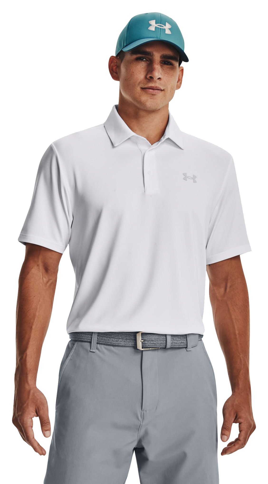 Play distraction-free for all 18 in the Under Armour® Playoff 3.0 Short-Sleeve Polo for Men. UA® took their most popular golf polo and made it more breathable, and extra stretchy with a better fit. Soft 95% polyester/5% elastane construction creates an anti-pick, anti-pill fabric with superior moisture wicking properties to speed drying. Lightweight 4-way-stretch material moves well in every direction. This UA men's loose-fit polo offers UPF 40 sun protection and built-in odor fighting. Other details include side-vent hem and 3-button placket with updated low-profile design. Machine wash. Imported. Manufacturer style #: 1378673.