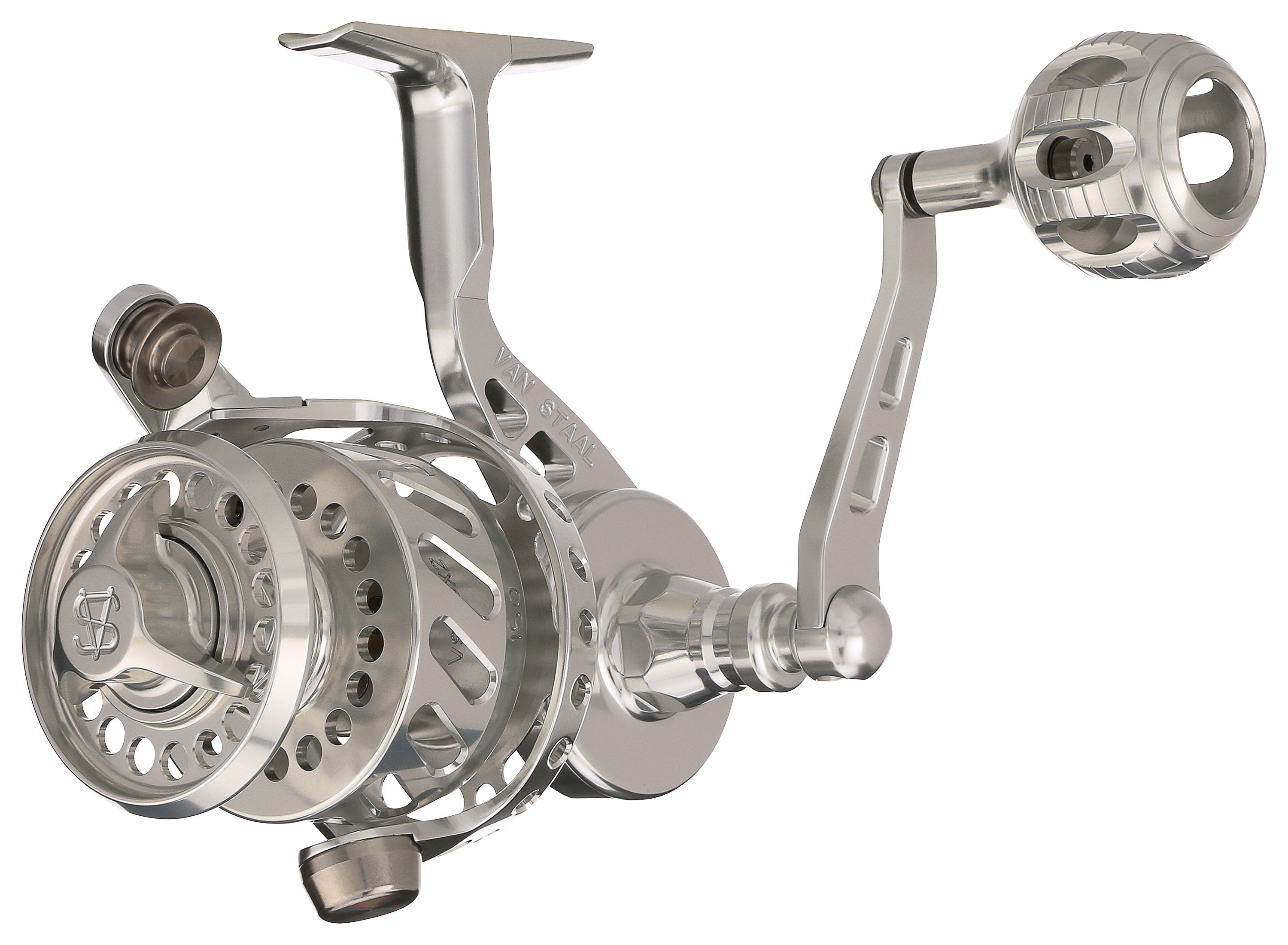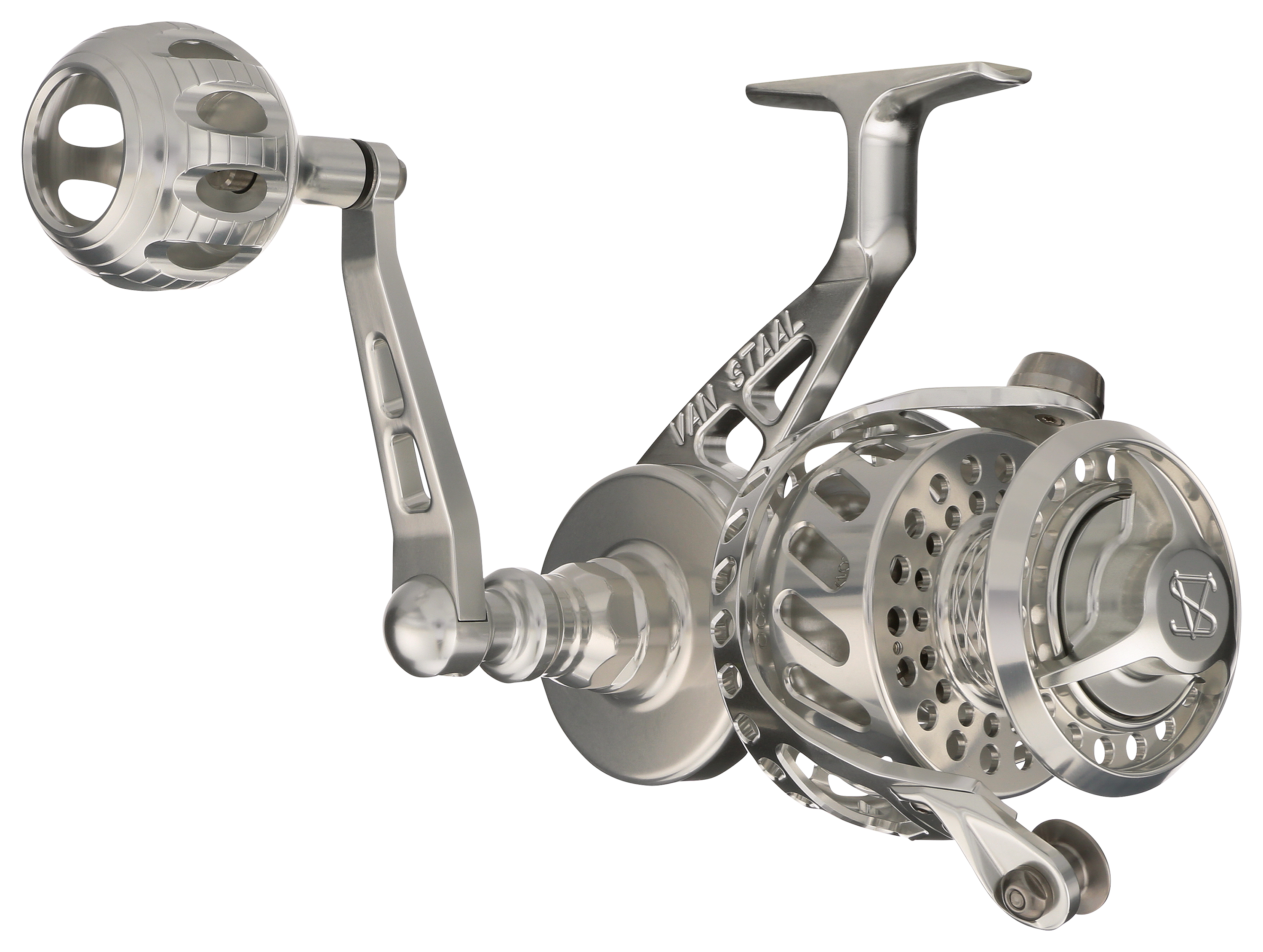The benchmark for reliability for 30 years, the Van Staal® X2 Series Bailless Spinning Reel maximizes your ability to take on the toughest fish in the sea. This is No Limitations fishing in its utmost expression – a smaller and faster, more powerful reel made for rigorous assignments, both inshore and offshore. Van Staal's classic foundation of simplicity and functionality are well represented here; the new unibody and stem design is fully sealed against saltwater intrusion, and crafted of rugged 6061 machined aluminum for exceptional strength with minimal weight. The Powergrip extended handle and drag knobs add increased cranking power and drag pressure for handling large fish on braided line. Titanium main shaft with stainless steel spiral-beveled gearing; oversized clutch for eye-crossing hooksets.