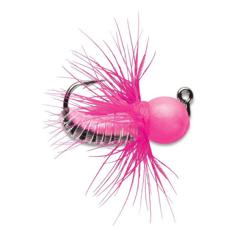 Whenever bugs or copepods are on the menu, the VMC® Tungsten Fly Jig is the perfect choice for matching the hatch. It's the most realistic imitation of a fly or aquatic insect ever seen in a tungsten jig. The compact head carries full weight for easy control, and it's Precision Balanced at 90° to maintain a consistent horizontal position. Lifelike hackle and soft plastic body gives predators the look and feel of the real deal. VMC Power Gap hook ensures solid hookups. Great for both ice fishing and open water.