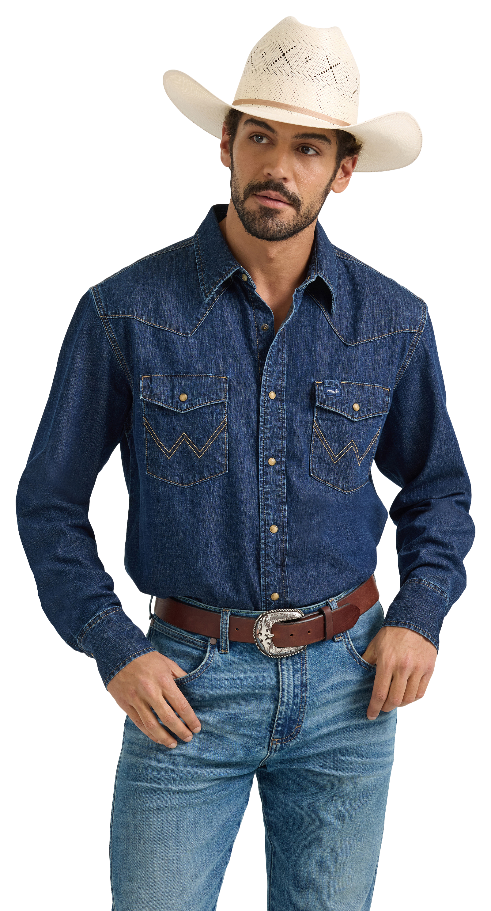 Timeless style, everyday comfort. The Wrangler® Denim Collection Long-Sleeve Snap-Down Shirt for Men looks and feels great all day whether you're tackling the to-do list or enjoying well-earned downtime. The snap front provides easy on/off, and dual chest pockets with snap flaps keep essentials close. A Western yoke completes the distinct look. 100% cotton. Machine wash. Imported. Manufacturer style #: 112361700.