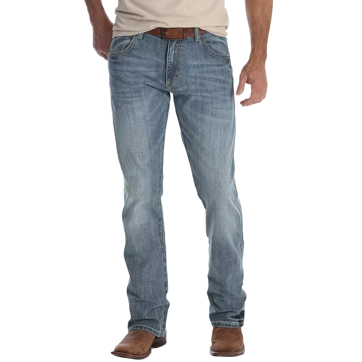 Since 1947, Wrangler® jeans have been a cowboy-approved wardrobe staple. Inspired by our Western heritage, these Wrangler® Retro® jeans combine our most iconic features with contemporary fits and washes. This updated classic features the same worn leather patch with our rope logo, 'W' stitching on the back pockets, and five-pocket styling. These men's slim bootcut jeans feature a streamlined silhouette through the seat, thigh, and knee, but the leg widens from the knee downward, which is good news for boots. When it comes to finding the best bootcut jeans for men, your search ends here. Shop from a wide variety of sizes and washes to find the perfect addition to your everyday ensemble.