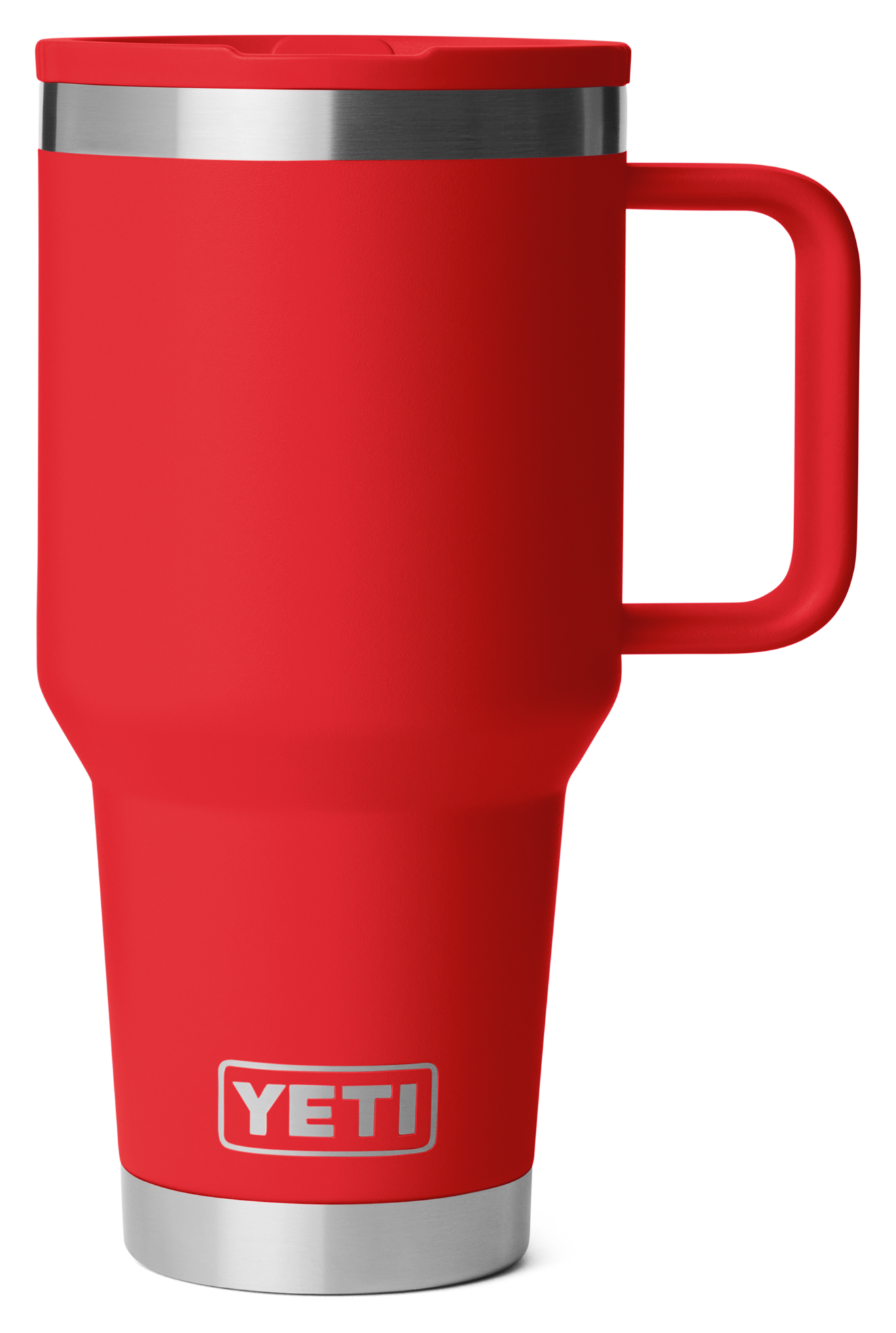 When you need ice-cold drinks to go, reach for the YETI® Rambler® 30-Oz. Travel Mug with Leakproof Straw Lid. Perfect for iced coffees and water on the go, the double-wall vacuum insulation keeps your drink chilled for hours, even on the hottest days. The smaller base fits most cup holders for travel convenience, and the 18/8 stainless steel construction is puncture- and rust-resistant for adventure-ready durability. The shatter-resistant, leakproof straw lid makes it easy to sip away the day, and this YETI mug is dishwasher safe for hassle-free cleaning. The YETI Rambler travel mug is BPA-free. Mfrs. 5-year warranty.