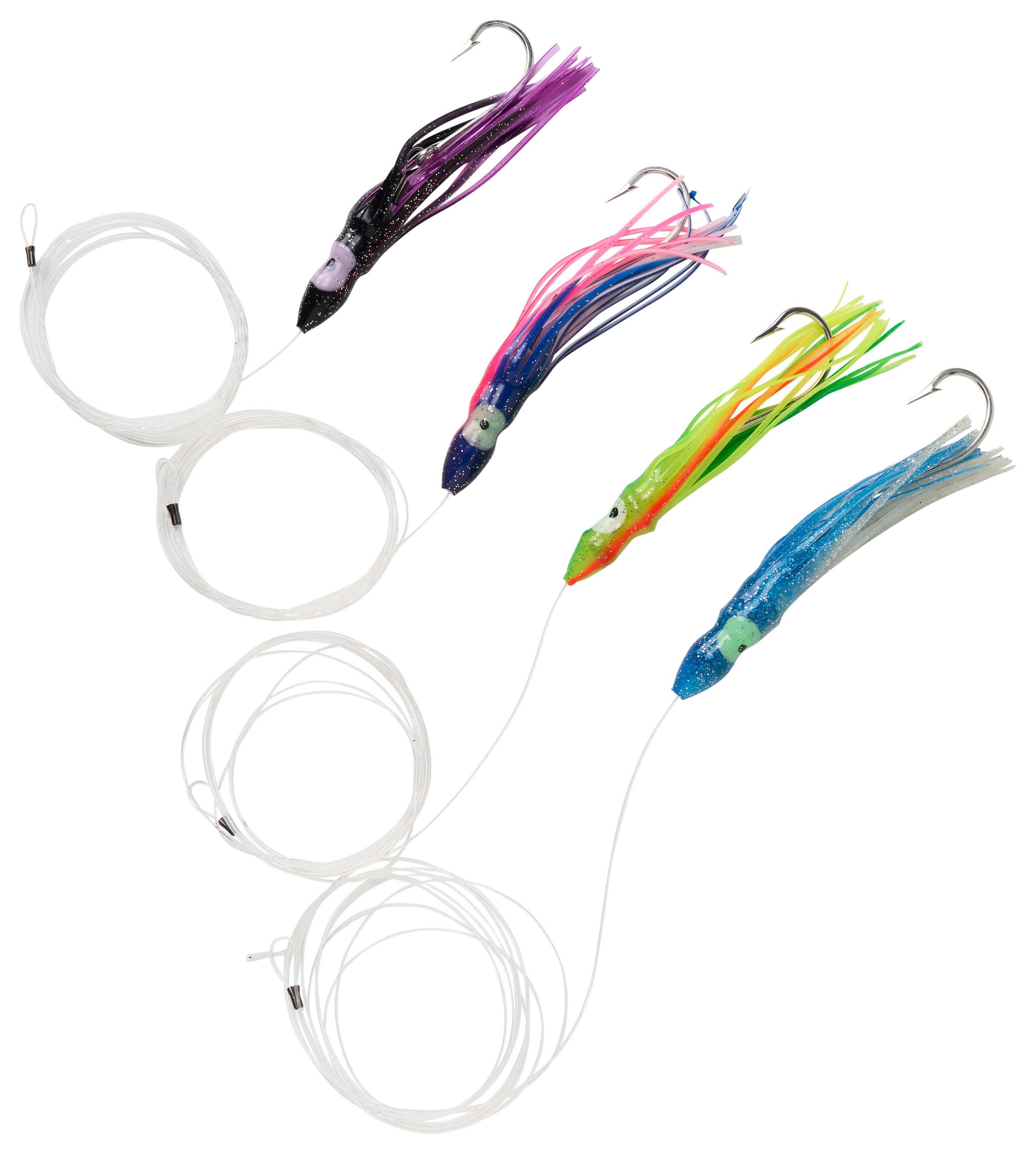 They didn't give the Yummee Ultimate Ballyhoo Rig Kit its name for no reason. This truly is the ultimate ballyhoo rig, giving you everything you need to catch everything from tuna to marlin. This rig includes the original Carolina Witch lure rigged on a swimming ballyhoo rig with three 4" flying fish out front, rigged to jump like fleeing bait. This dual chasing/fleeing action creates both visual and sonic attraction that triggers a response from even the most lethargic predators. Next time you go offshore, make sure you're rigged up with the Yummee Ultimate Ballyhoo Rig Kit.